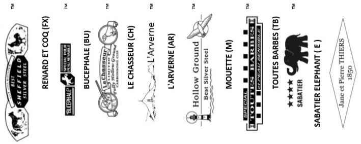Mark Options: AIGLE™ - LOUP ET BELIER™ - SPARTACUS™ - DURANDAL™ - LE THIERNOIS™ - BISON™ - ZEBRE™ - BIJOU DE FRANCE™ - RENARD ET COQ™ - BUCEPHALE™ - LE CHASSEUR™ - L'ARVERNE - MOUETTE™ - TOUTES BARBES™ - SABATIER ELEPHANT ™ - JANE et PIERRE THIERS - MEDAILLE D'OR ALGER 1921 - No Mark (Check the marks below)